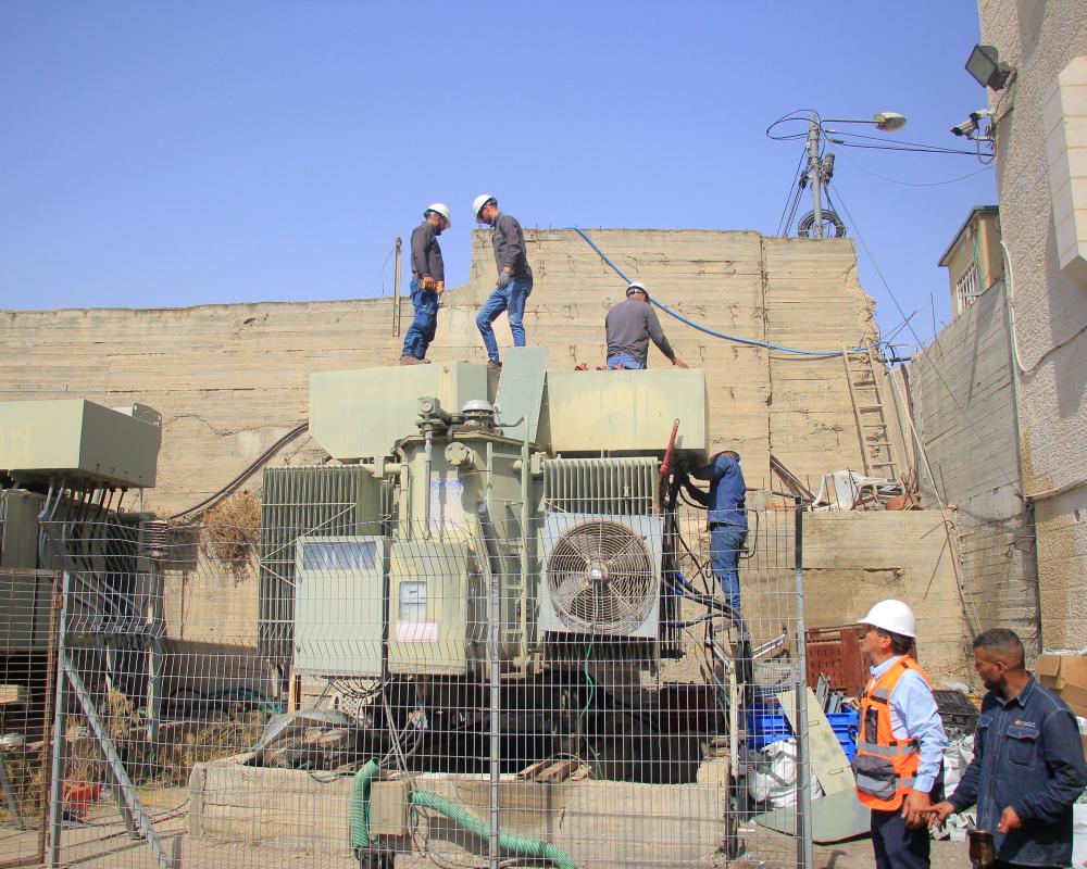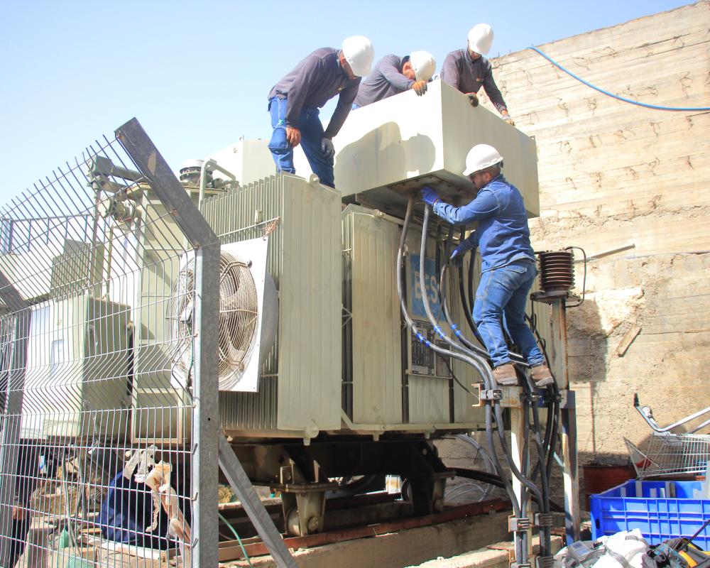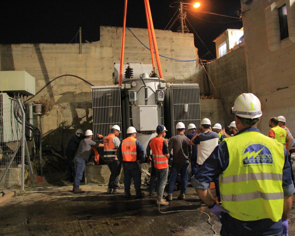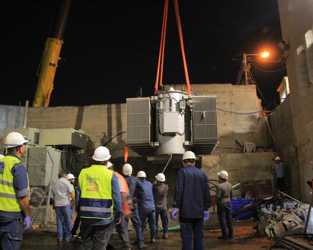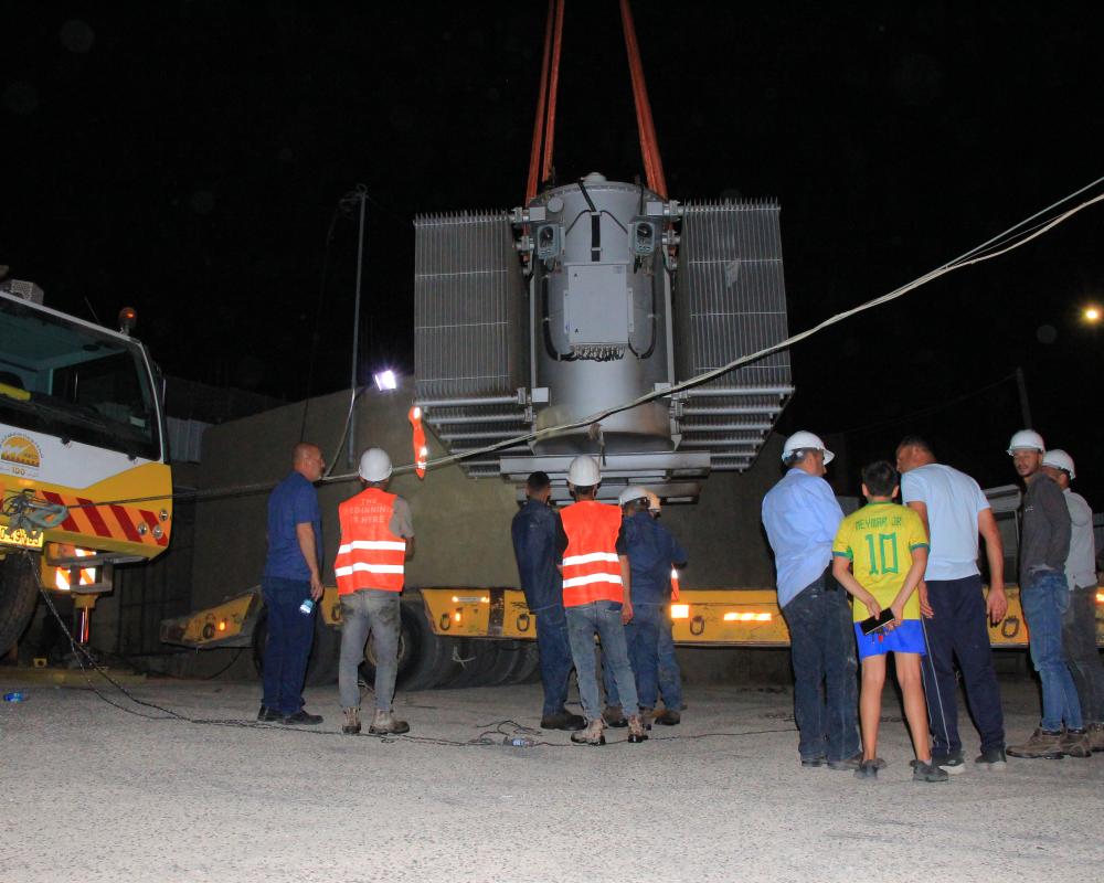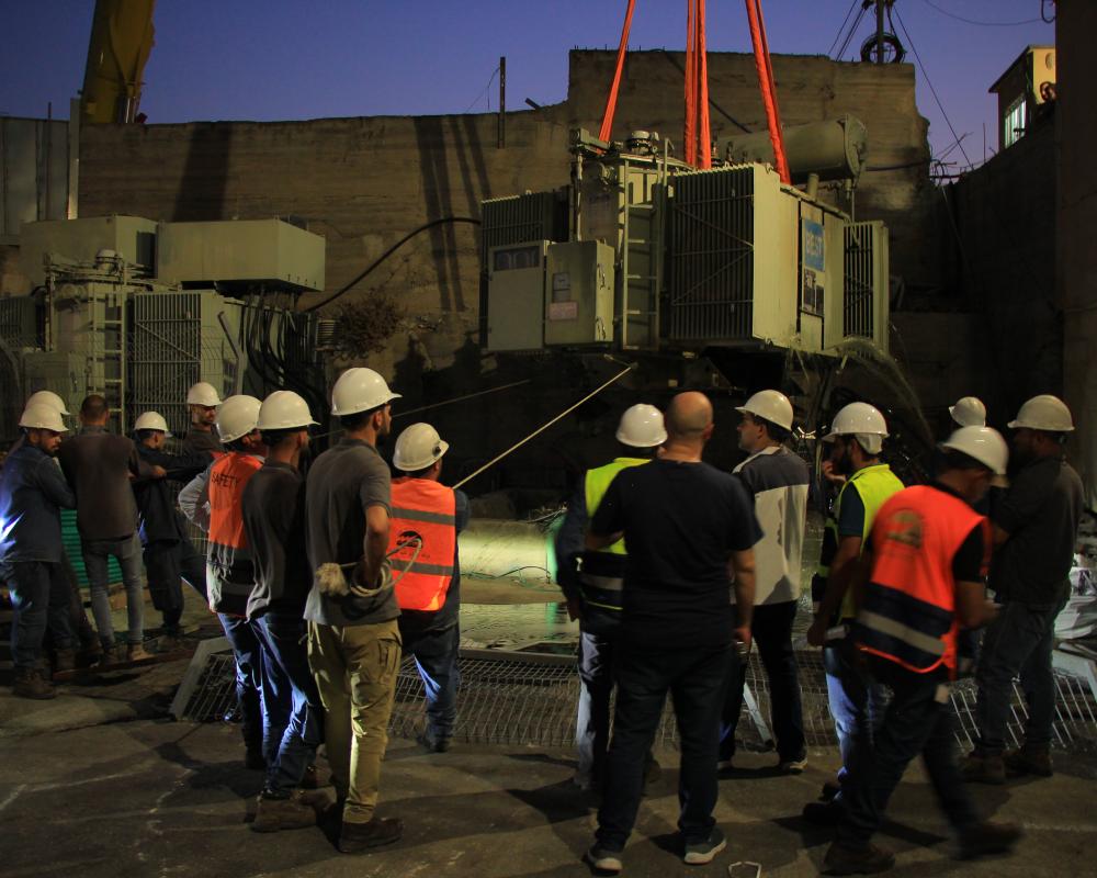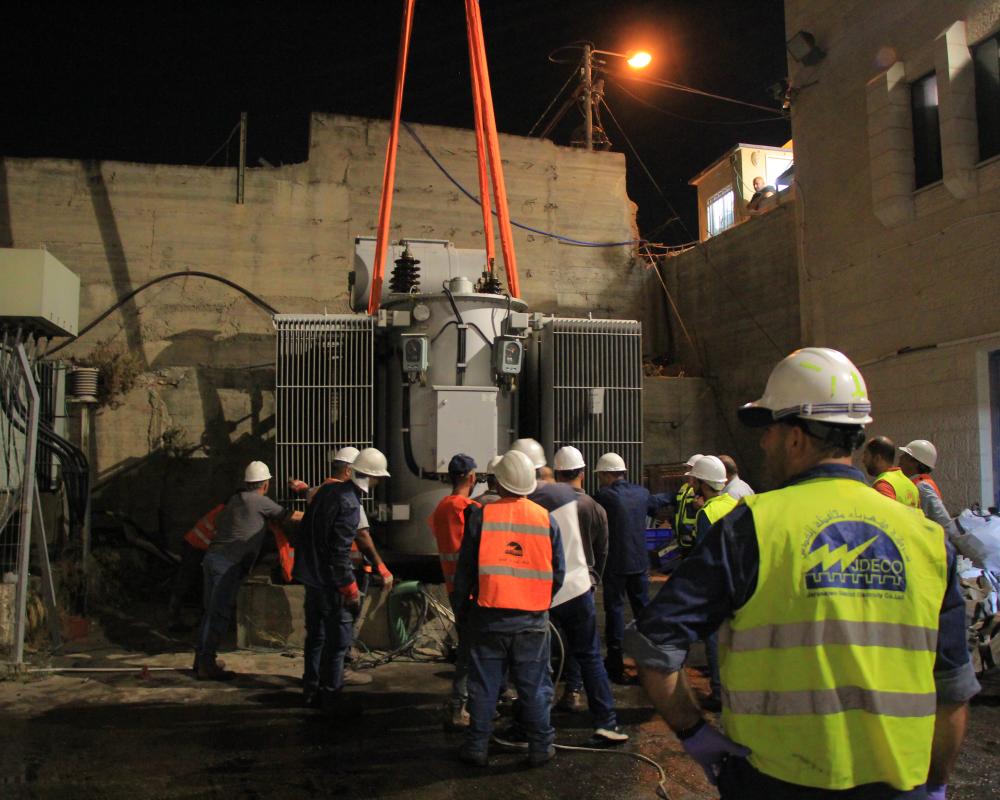 وقامت طواقم الشركة منذ ساعات الفجر الاولى باجراء كافة الاستعدادت التقنية والفنية لتركيب محول القدرة الجديد بدل احد محولات القدرة الذي توقف عن العمل نتيجة الضغط الكبير على الاحمال الذي لم تشهده الشركة من قبل بسبب موجة الحر التي لم تحصل في فلسطين منذ العام ١٩٤٢ وفق محطات الارصاد الجوية المختلفة.