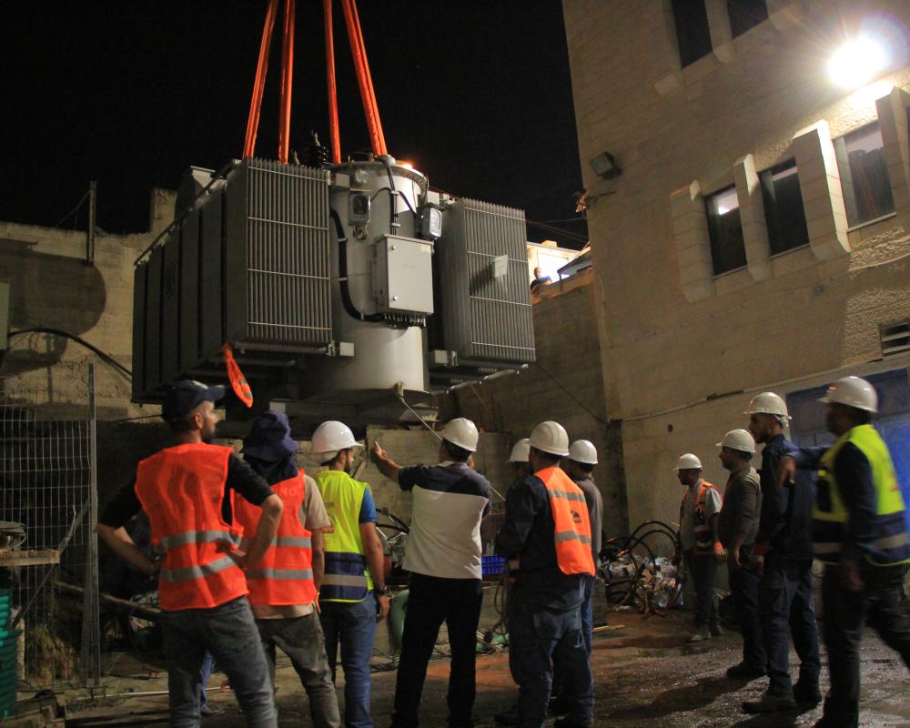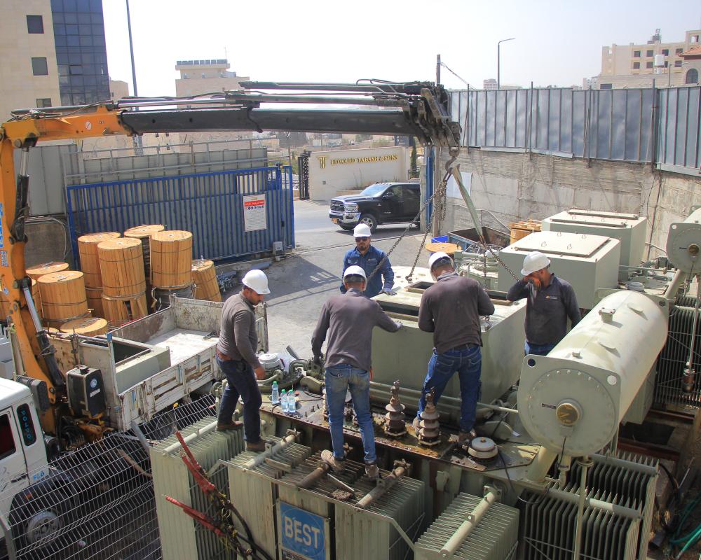 /PNN / في ظل موجة الحر الشديدة تواصل شركة كهرباء محافظة القدس جهودها لتوفير التيار الكهربائي وتباشر بتركيب احد محولات القدرة الرئيسية لضمان استمرار الخدمات في بيت لحم.