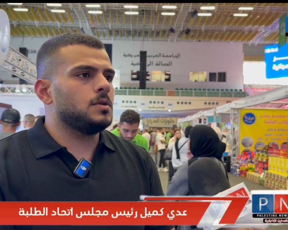 وفي هذا الاطار يقول عدي كميل رئيس مجلس الطلبة في جامعة جنين الامريكية ان هذا المعرض جاء ليشكل نموذج من نماذج الحلول الابداعية لمجلس الطلبة مع ادارة الجامعة واتحاد الخريجين بالتعاون مع الغرفة التجارية ليكون ريع المعرض الاقتصادي لدعم الطلبة المحتاجين من خلال صندوق الطالب المحتاج.