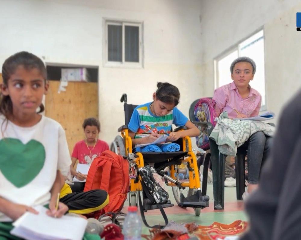 غزة / PNN - على كرسي متحرك بملامح طفولة مسلوبة وبقدميين مبتورتين وابتسامة غائرة تتابع الطفلة سما رأفت أبو عابدة دراستها داخل صفوف دراسية مؤقتة في مدرسة تابعة للأنروا في مخيم البريج وسط قطاع غزة .