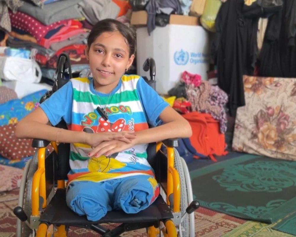 نزحت سما أبو عابدة وعائلتها من منزلهم الى مدرسة الانروا في مخيم البريج، حيث قصفهم الاحتلال ،وسلبها قدميها ليجعلها طريحة على كرسي متحرك ،تأمل أن تحصل على أطراف صناعية وأن تكمل رحلة علاجها ،تمكنها من الحركة واستعادة حياتها كباقي الأطفال تريد أن تلعب فهي لاتزال في الحادية عشرة من عمرها .