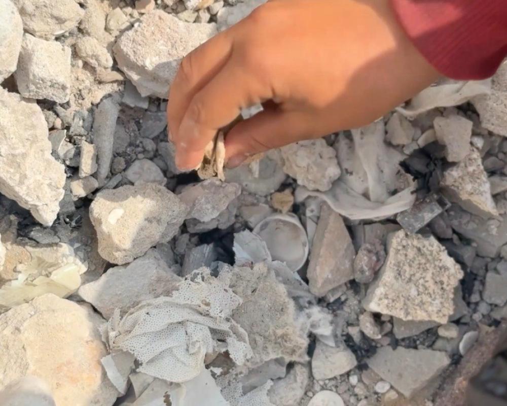 أما الطفل الصغير محمد أبو عرار بوجه يحمل ملامح التعب وتظهر أثار الجوع والتعب على جسده الصغير وسط الركام يبحث عن الخبز الجاف ليطعم اخوته الصغار فهو وجد نفسه وبعمر الطفولة المسلوبة يعيل اسرته بعد استشهاد والده.
