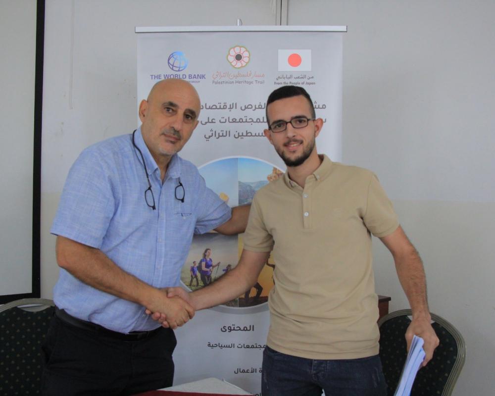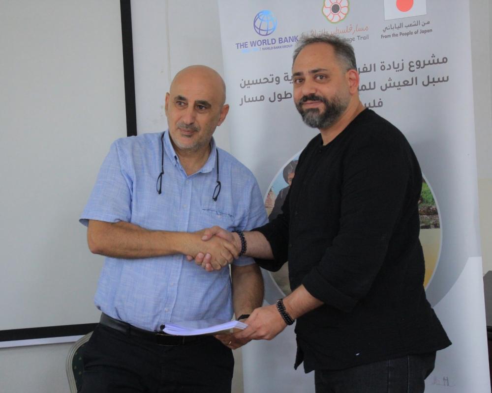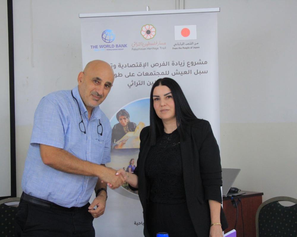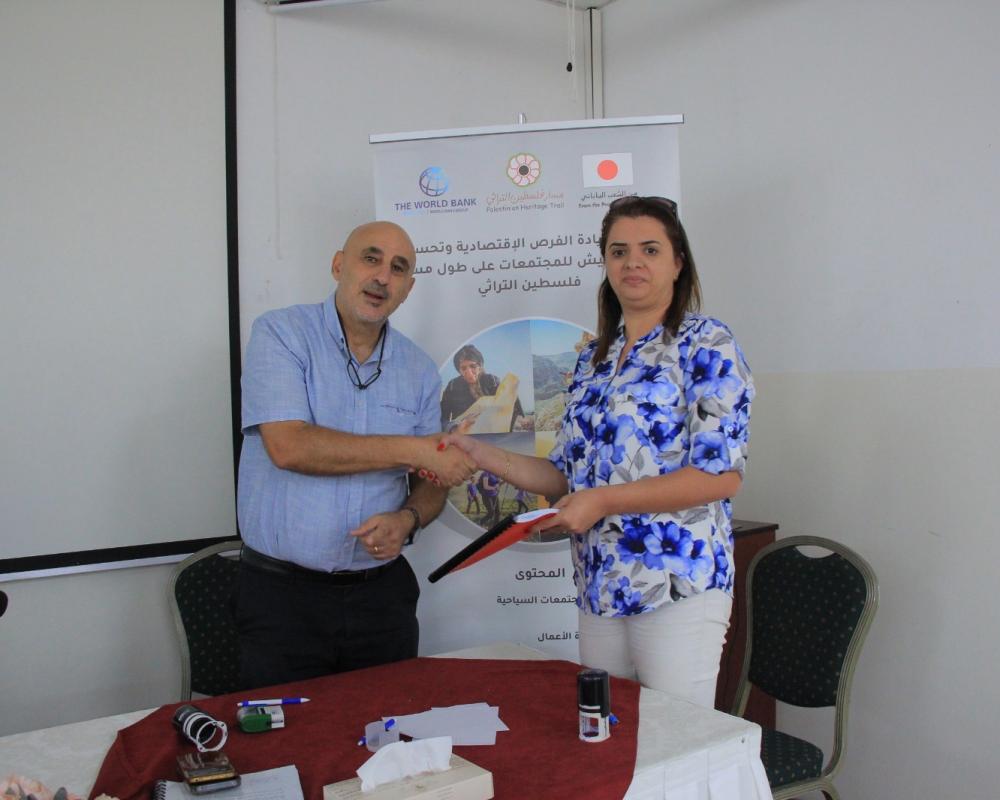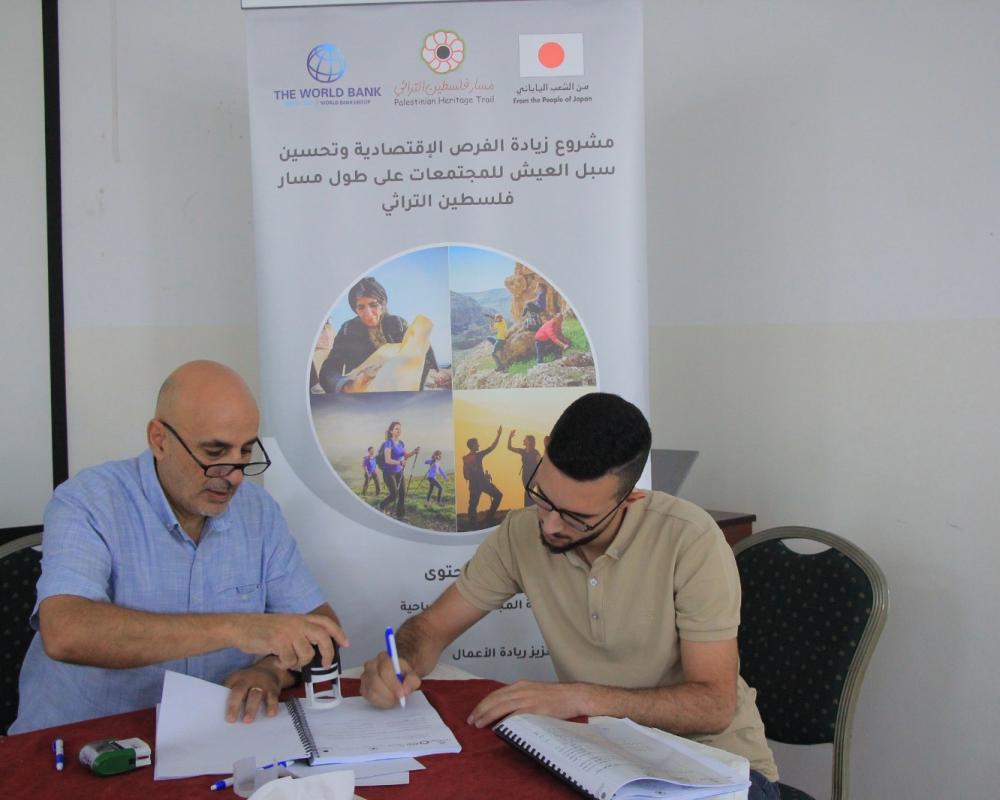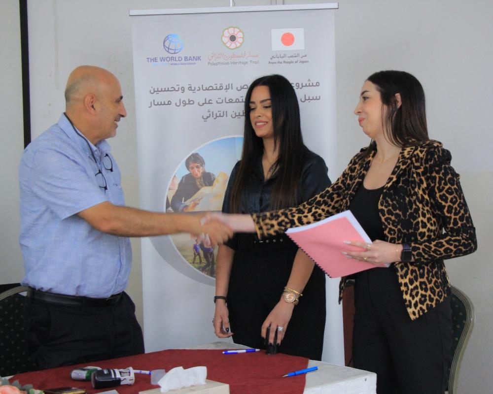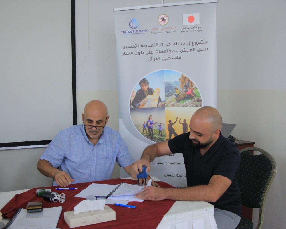 بيت لحم / PNN / برعاية وزارة السياحة وبحضور وزير السياحة هاني الحايك وقع مدير مسار فلسطين التراثي 19 اتفاقية بقيمة 325 ألف دولار مقدمة من البنك الدولي ضمن مشروع زيادة الفرص الاقتصادية وتحسين وتحسين سبل العيش للمجتمعات على طول مسار فلسطين التراثي حيث تضمنت المشاريع المستفيدة تقديم خدمات تطوير قطاع السياحة الفلسطينية.