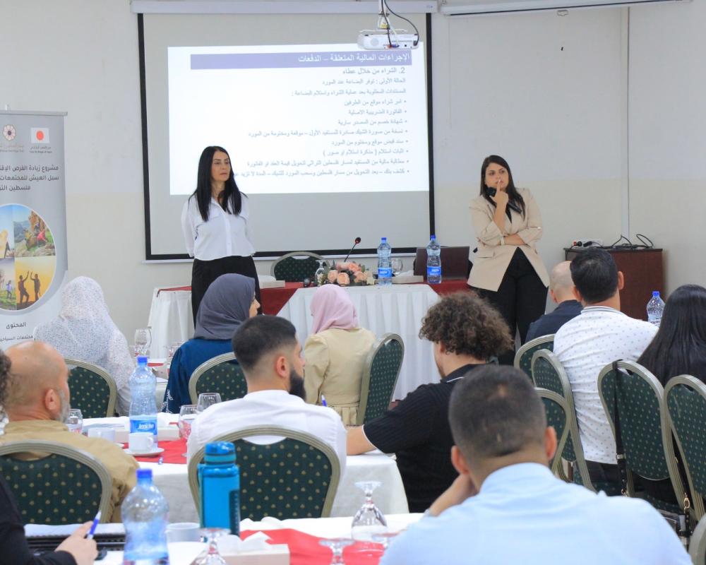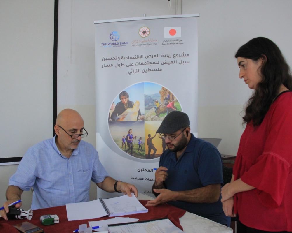 وخلال مراسم توقيع الاتفاقيات قدم ادارة مسار فلسطين التراثي وادارة المشروع تدريب وشرح حول اليات استخدام المنح التي تم التوقيع عليها وبعد ذلك تم التوقيع على اتفاقيات المنح.