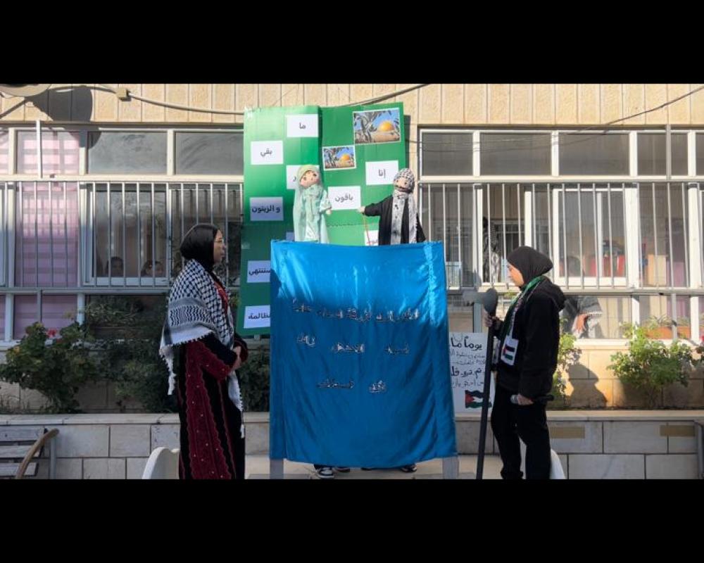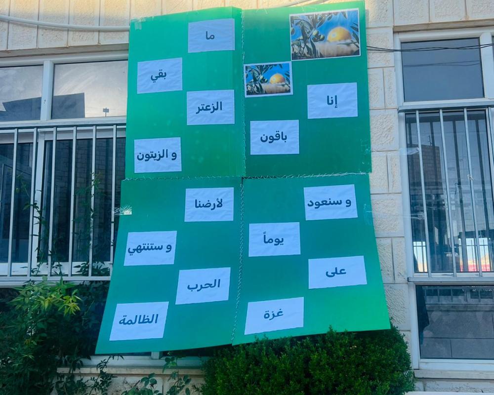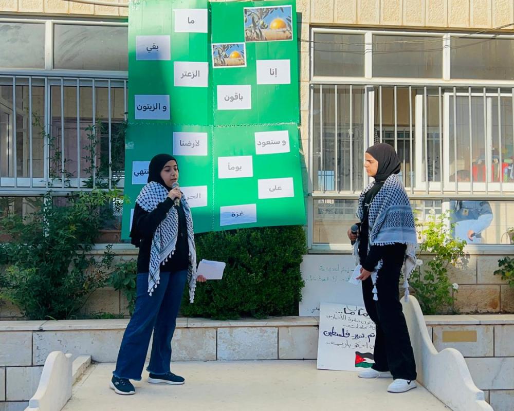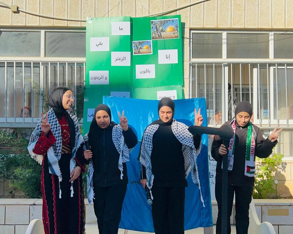 وجددت الطالبات العهد بالتمسك بحقنا بأرضنا وحريتنا وحلمنا بدولتنا الفلسطينية المستقلة وعاصمتها القدس الشريف حيث رددوا إنا باقون ما بقي الزعتر والزيتون.