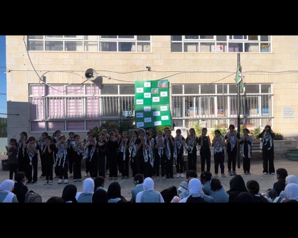 وتعبيراً عن التضامن العام مع شعبنا وقضيتنا العادلة ، ورفعت الطالبات العلم الفلسطيني الشامخ ، وتعاونت الطالبات بشكل كبير في إنجاح هذا اليوم.