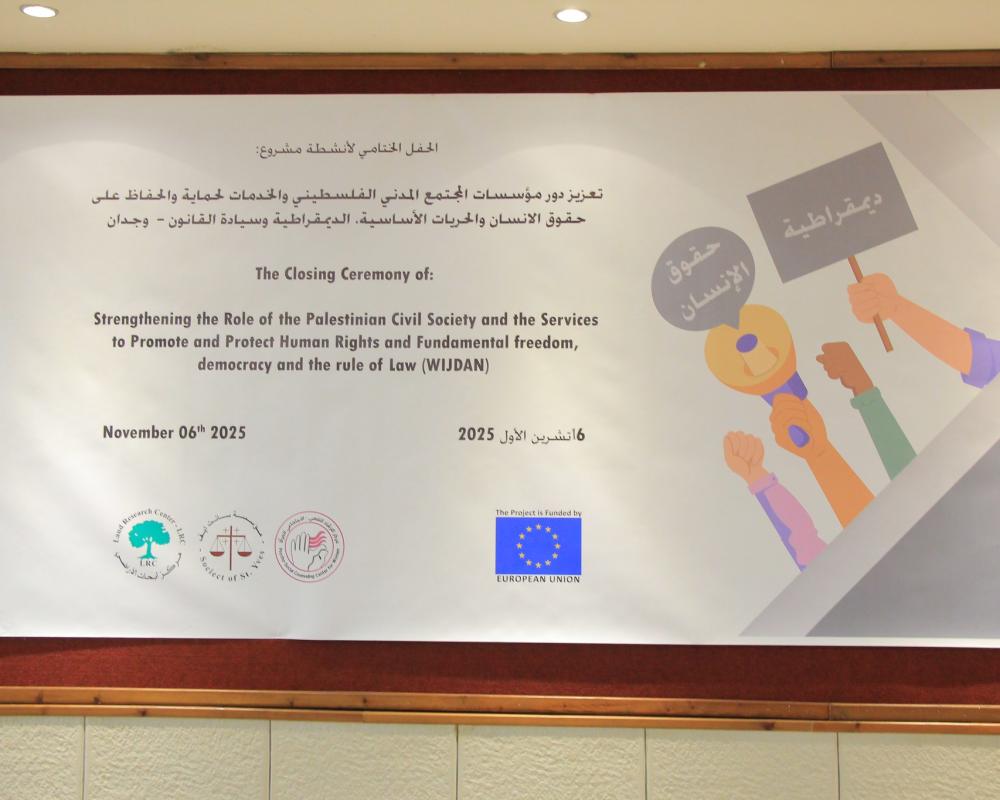 بيت لحم /PNN/ نظم مركز أبحاث الأراضي بمناسبة اليوم العالمي للموئل الفعاليات الختامية لمشروع تعزيز مؤسسات المجتمع المدني الفلسطيني لحماية والحفاظ على حقوق الإنسان والحريات الأساسية الديمقراطية وسيادة القانون "وجدان".